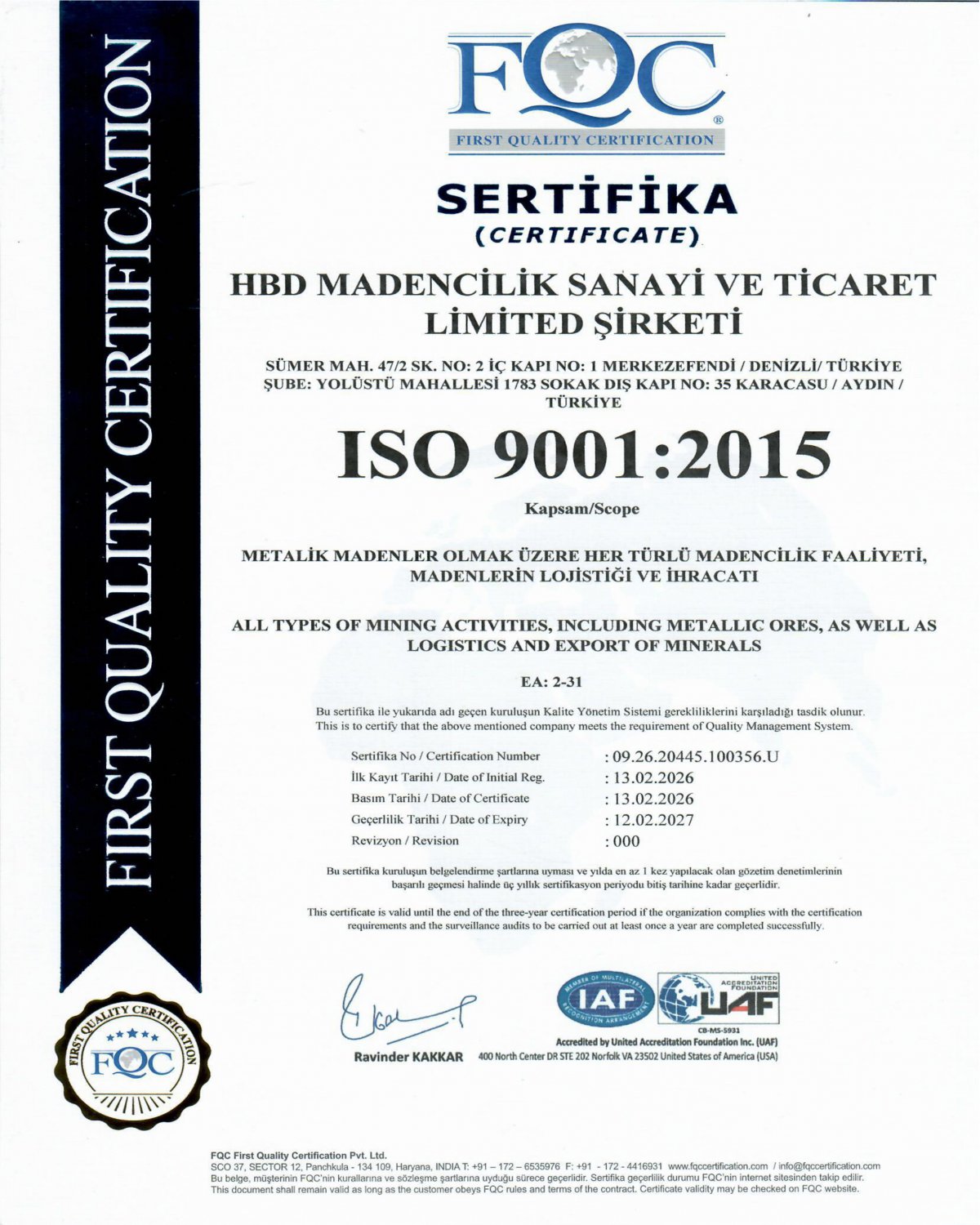 Sertifika ISO 2